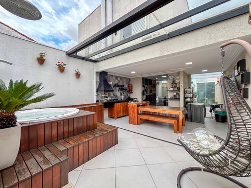 Sobrado Reformado Esplanada do Sol . Área do terreno: 450m² Área construída: 350m² . 5 dormitórios, sendo 4 suítes Pavimento térreo . - Suíte com ar condicionado - Sala com pé direito duplo -Sala com 2 ambientes - Cristaleira embutida - Sala de jantar - Escritório - Lavabo - Cozinha integrada, planejada e arejada - Área de serviço ampla, iluminada e arejada - Área gourmet com churrasqueira e forno de pizza - Área permeável - Oficina - Banheiro . Pavimento superior . - 3 suítes, sendo 1 com closet e banheiro com cuba dupla e 2 chuveiros - Sala íntima Diferencias: - Casa recém reformada - Paisagismo - Dormitórios amplos e arejados - Terreno com excelente incidencia solar