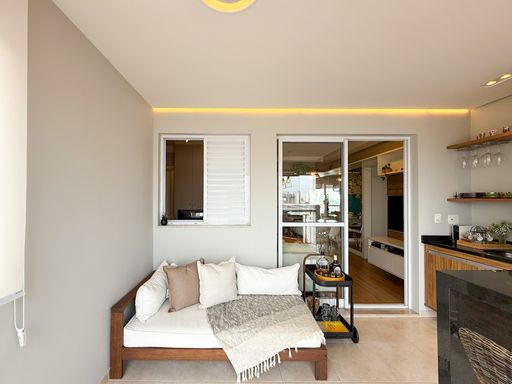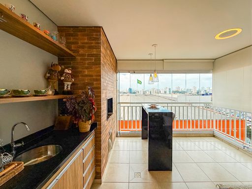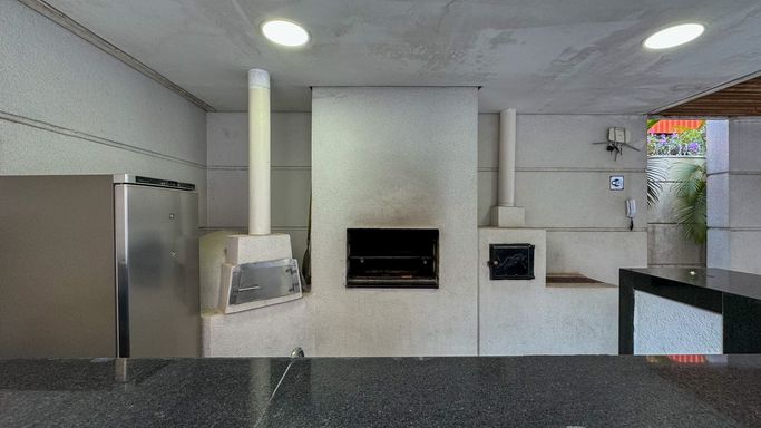 - Varanda com churrasqueira à carvão e fechamento de vidro