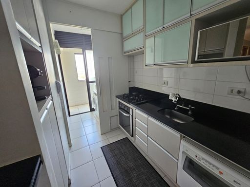 - Cozinha planejada com balcão americano, cooktop e forno