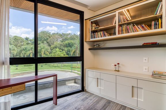 - 1 suíte máster com varanda, banheira com vista panorâmica e closet grande e sala íntima com banheiro