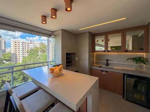 Ampla Varanda gourmet com churrasqueira a carvão e ar condicionado tipo Cassete