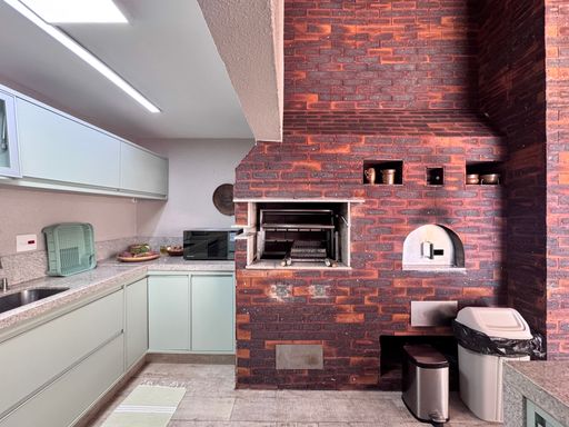 Amplo espaco gourmet completo com churrasqueira e forno de pizza